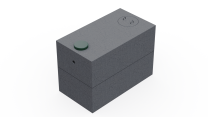 This 2-piece tank includes a 24” concrete lid over the inlet side, a 12” plastic riser with a lid over the outlet side, mastic for sealing the halves together, as well as pre-installed plastic baffles and gasket seals (inlet and outlet) for ease of plumbing installation.